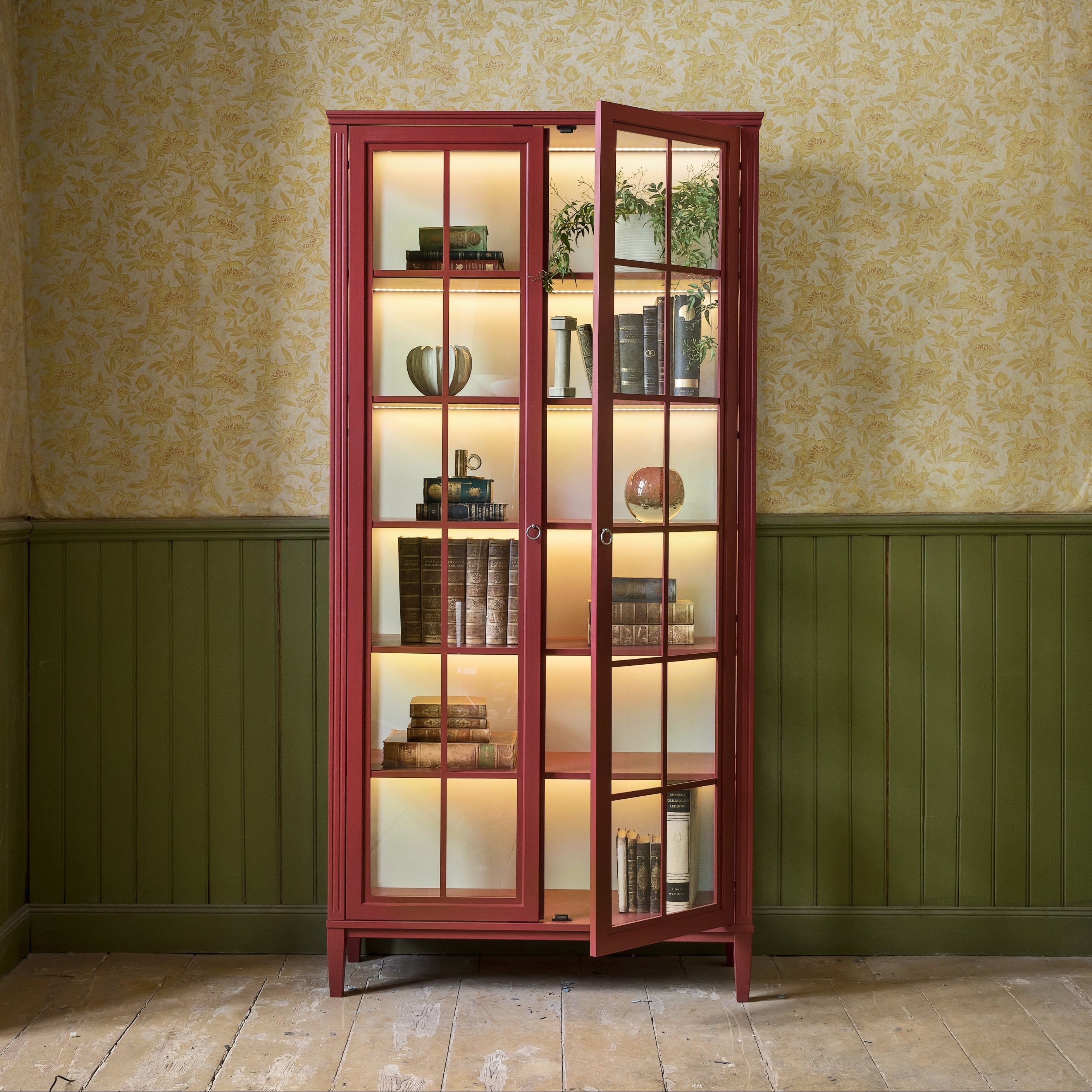 Where classic design elements meet modern aesthetics. The display cabinets with Burned Walnut details and integrated lighting give a warm and inviting feeling. Antique bronze fittings in a modern vintage connect to Englesson's tradition of quality and style.