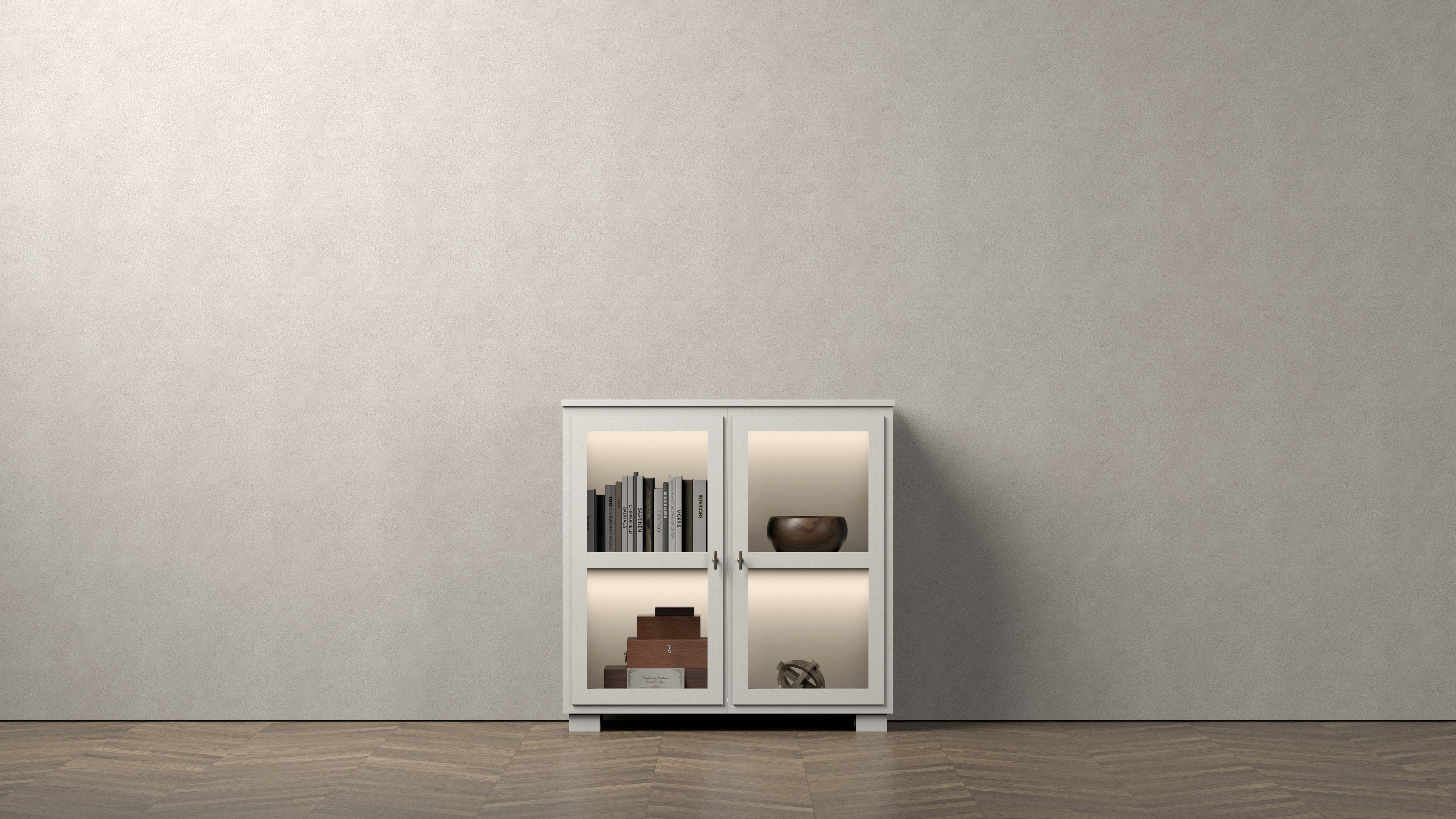 Camden Hög Skänk med två glasdörrar erbjuder ett stilrent sätt att framhäva dina mest älskade föremål. De inbyggda dimbara lamporna lyfter fram din inredning och skapar en behaglig, stämningsfull belysning. Denna skänk kan stå som ett solitärt inslag eller kombineras med andra möbler från Camden-serien. Finns tillgänglig i White och Black, en perfekt balans mellan modern estetik och klassisk elegans