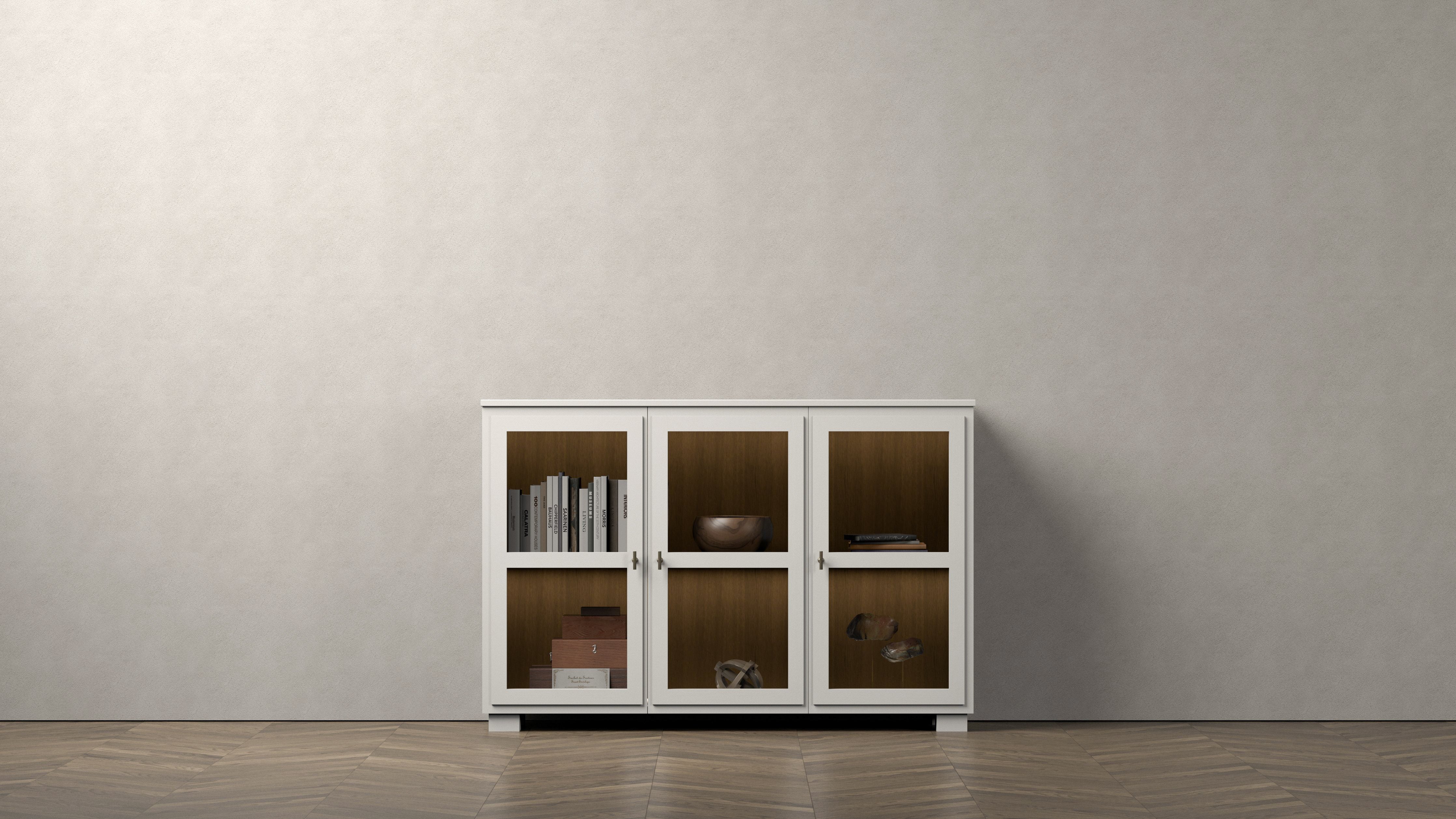 Camden Hög Skänk med tre glasdörrar förenar elegant design med praktisk förvaring. Möbeln är handmålad med en subtil struktur som ger ett inarbetat och stilfullt uttryck. De klara glasdörrarna låter dig på ett smakfullt sätt visa upp dina favoritföremål, medan den generösa förvaringen bakom dörrarna håller allt prydligt organiserat. Den integrerade dimbara belysningen framhäver både dina föremål och möbelns detaljer, och skapar en varm, inbjudande atmosfär. Skänken kan användas som en fristående möbel eller i kombination med andra delar i Camden-serien. Finns i färgen White.