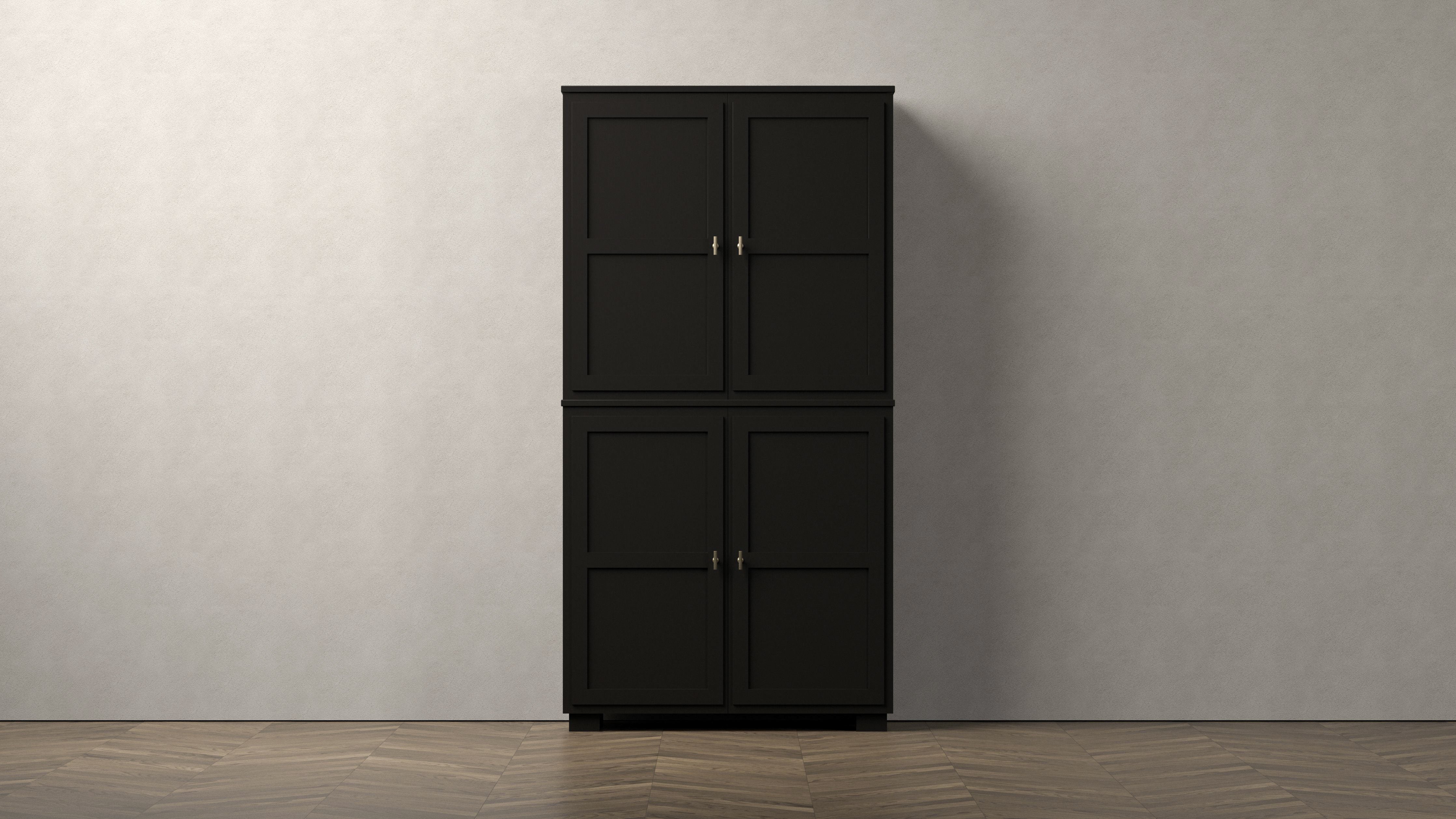 Camden Vitrinskåp kombinerar stil och funktionalitet med sin eleganta design. Bestående av en skänk med två dörrar, en låda och en hylla med trädörrar som bas, samt en övre skänk med två trädörrar och två lådor inuti, erbjuder den generös förvaring. Hela möbeln är handmålad med en strukturerad finish och finns i färgerna White och Black. Perfekt för att skapa en enhetlig och stilren inredning.