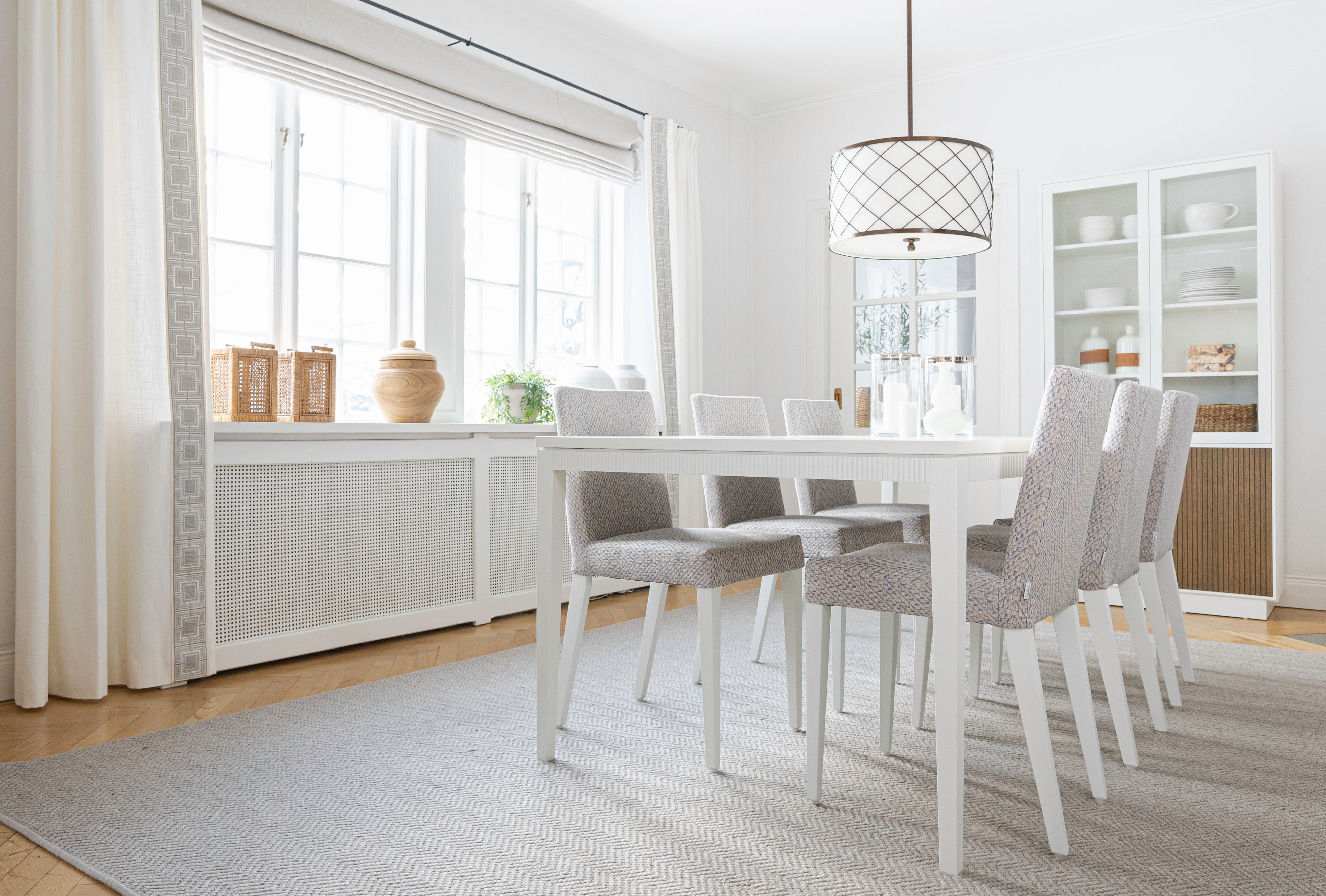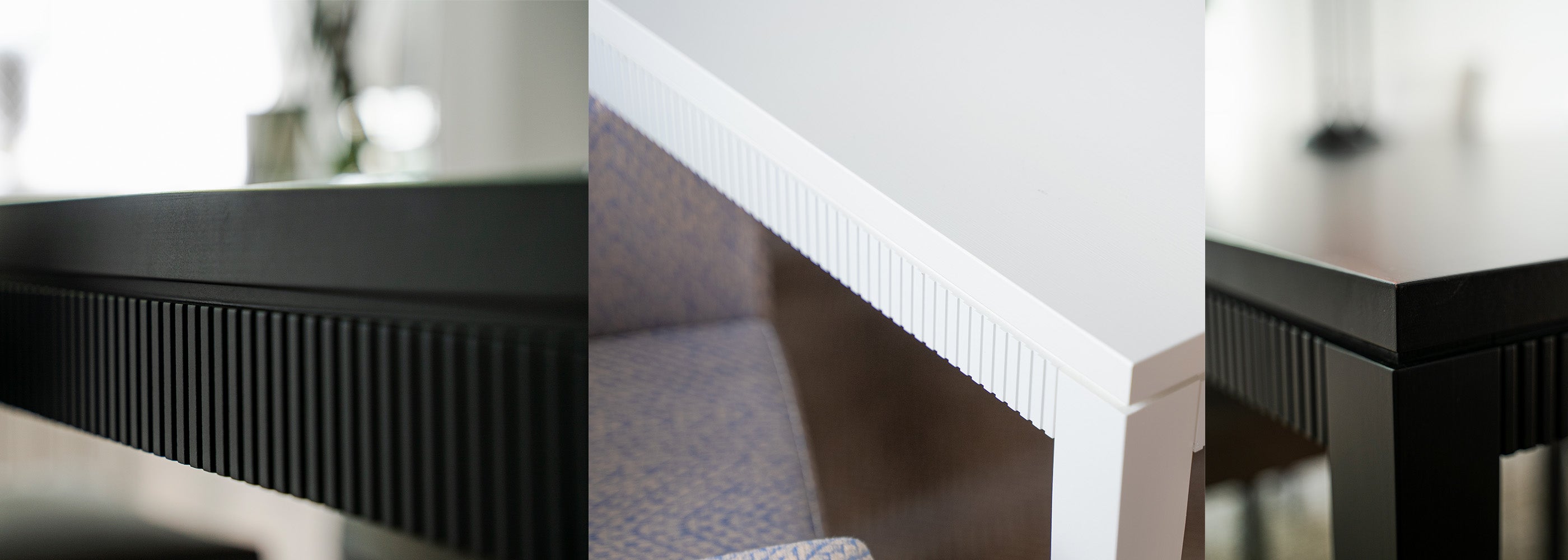 Line Matbord är ett stilrent matbord med med dekorativa linjer längs kanten under bordsskivan. Bordet kommer med två iläggskivor som enkelt förvaras i bordets mitt och som gör att bordet kan bli totalt 290 cm när du behöver duka för flera. Matbordet finns i färgvalen Black och White.