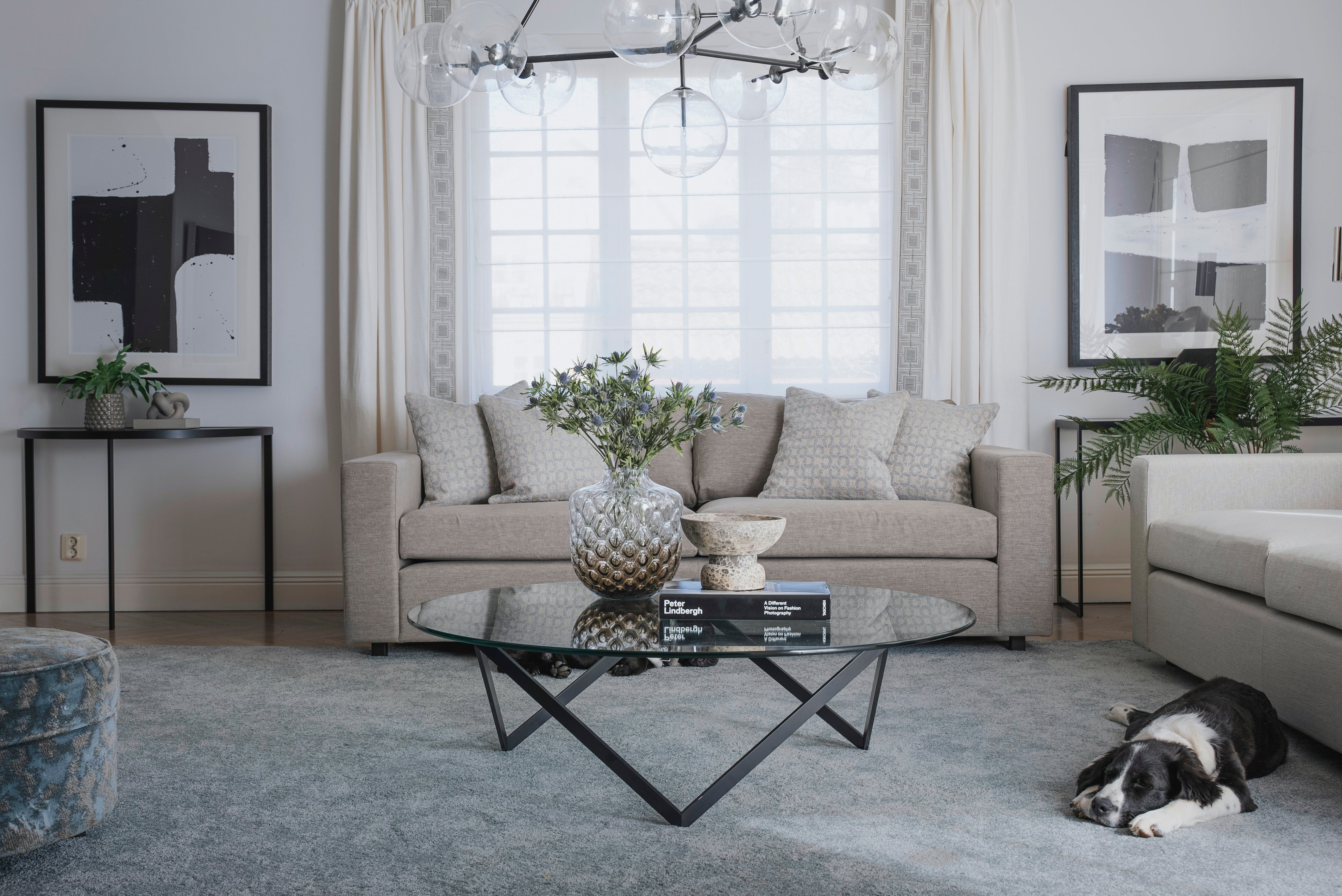 Ett av våra mest populära soffbord. Sirius har en flytande skiva av glas placerat på en ram i plattjärn i antingen svart metall eller silvergrå metall. Det här bordet get ett lätt, elegant och luftig intryck samt ger liv och lyfter fram din vardagsrumsmatta.