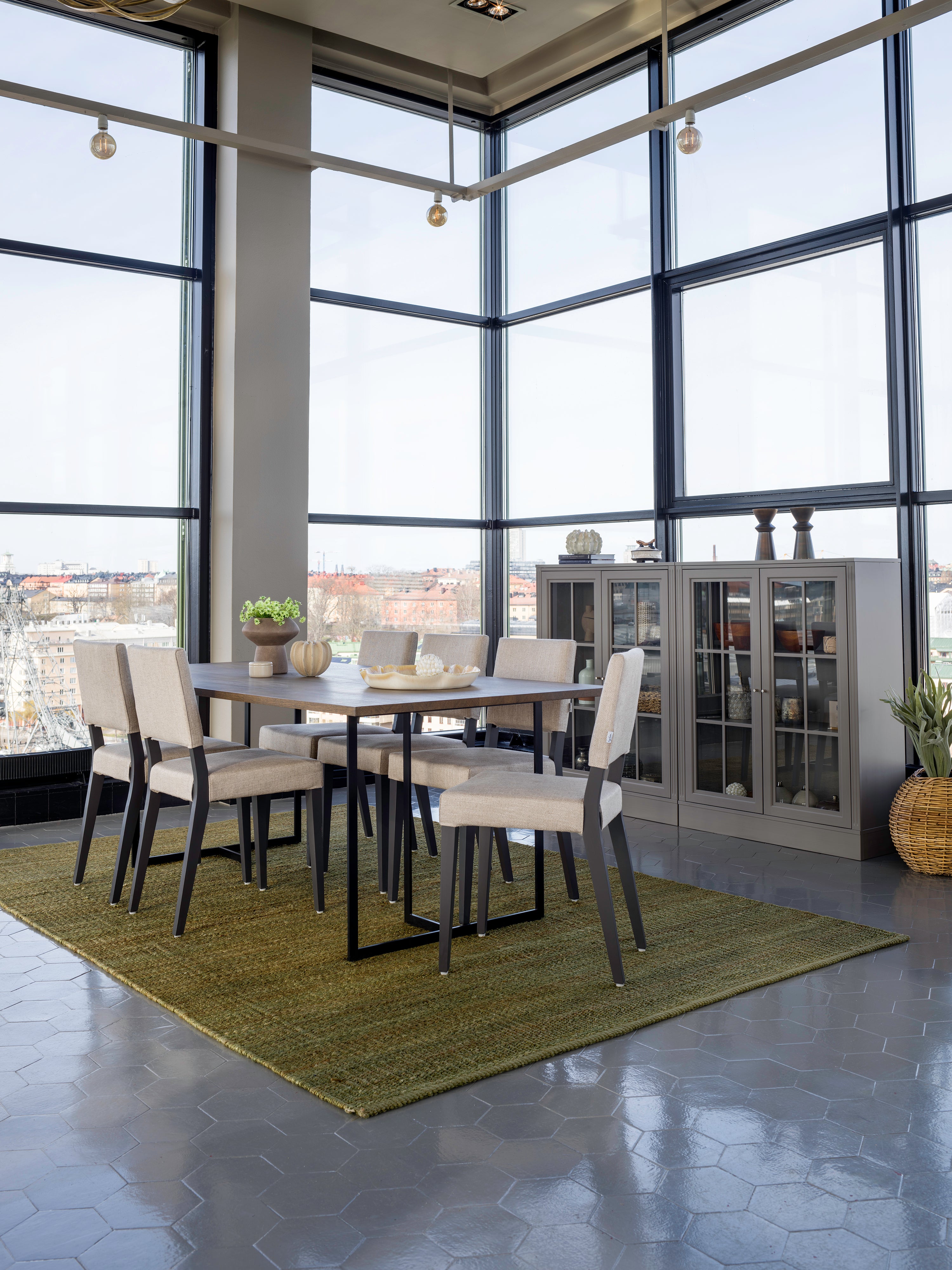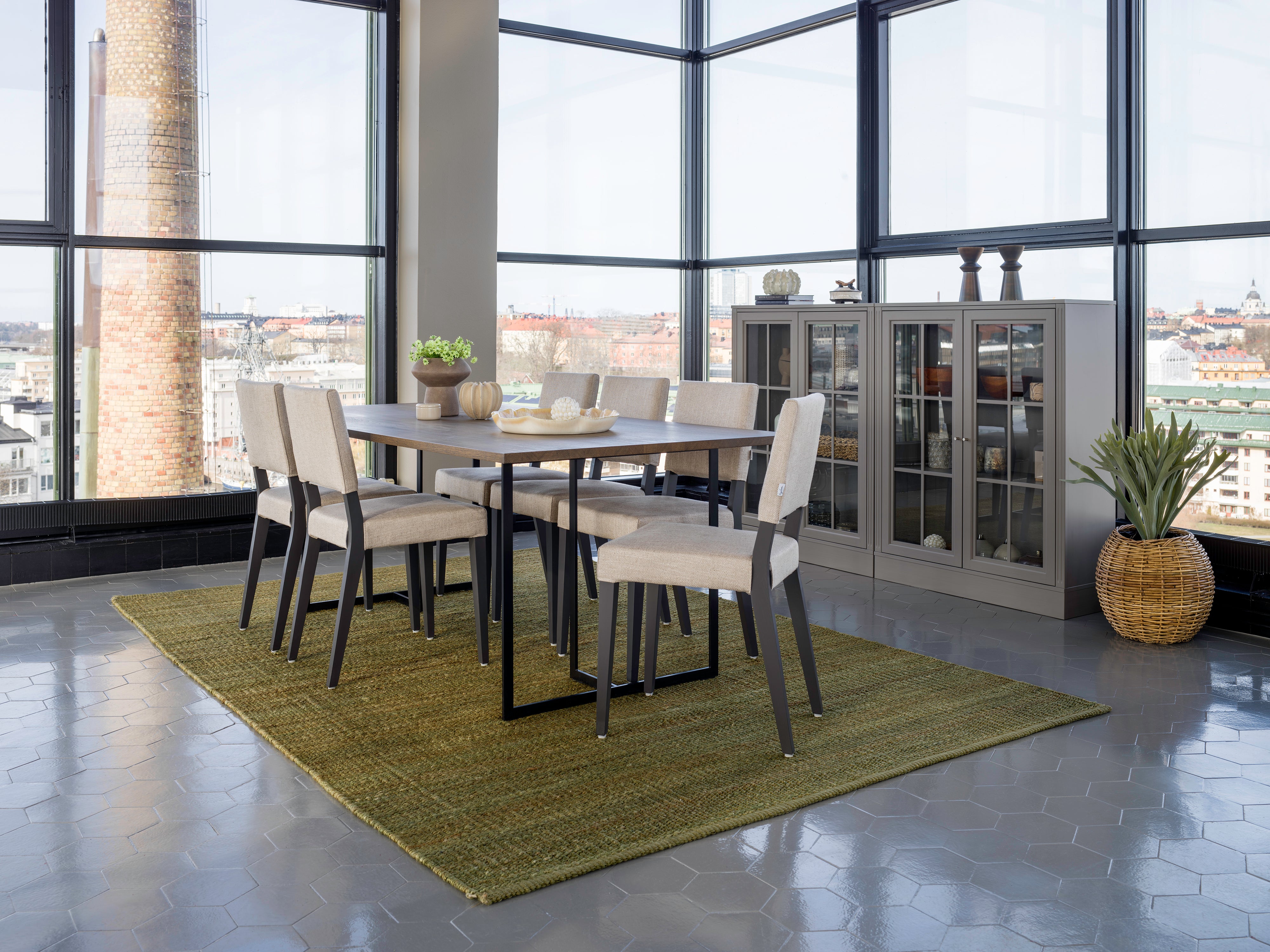 Ett väldigt smakfullt matbord i serien Square. Välj mellan en diskret benställning i svart metall eller det djärvare valet av silvergrå metall. Bordets skiva är tillverkad av massiv ek med färgvalen Black Oak eller Burned Walnut.