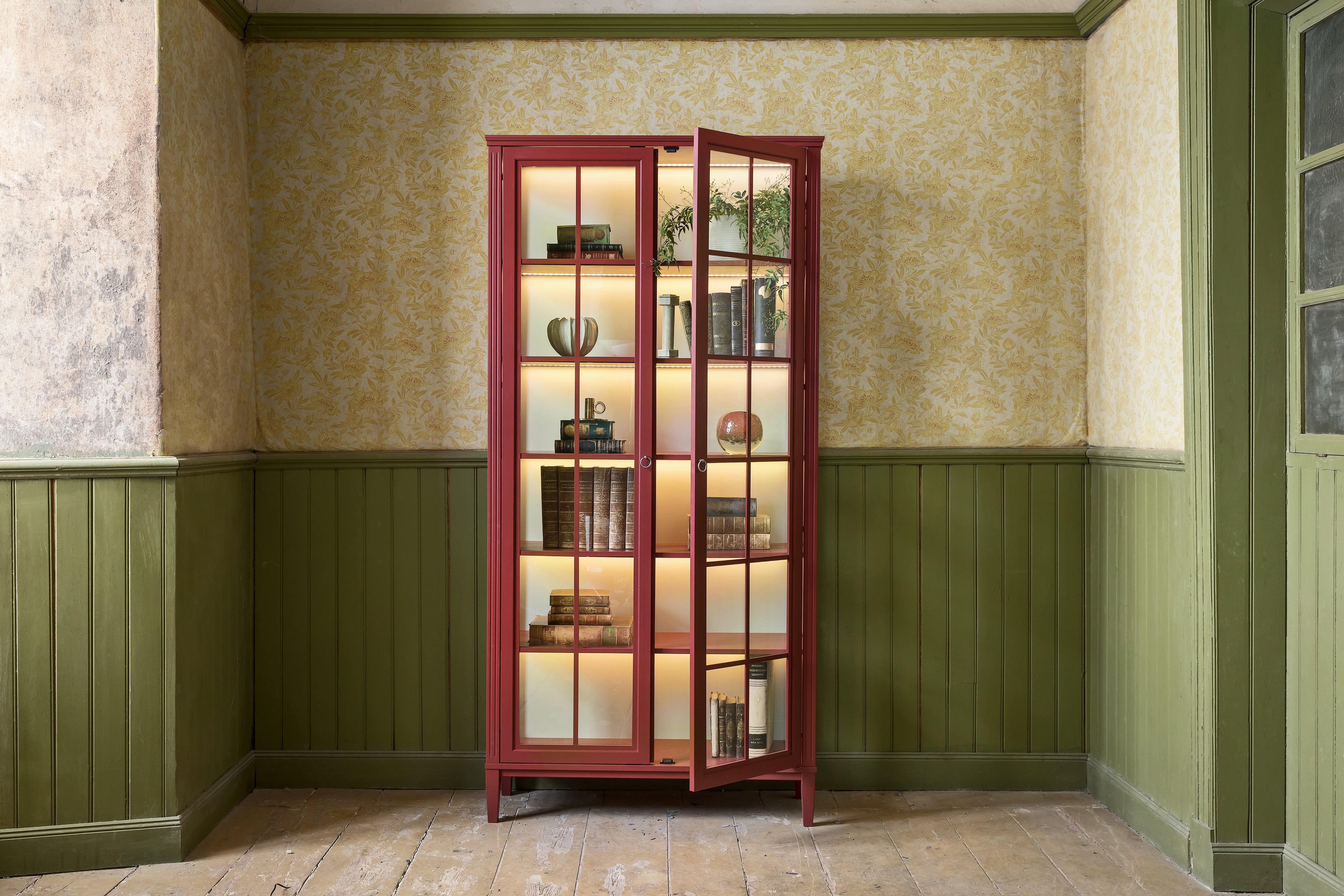 Sätt ljus på dina vackraste ting med Stockholm 2.0 vitrinskåp en integrerad ledbelysning som diskret sitter placerad över varje hyllplan. Det röda skåpet blir en iögonfallande och elegant möbel som lyser upp ditt hem under en lång tid.