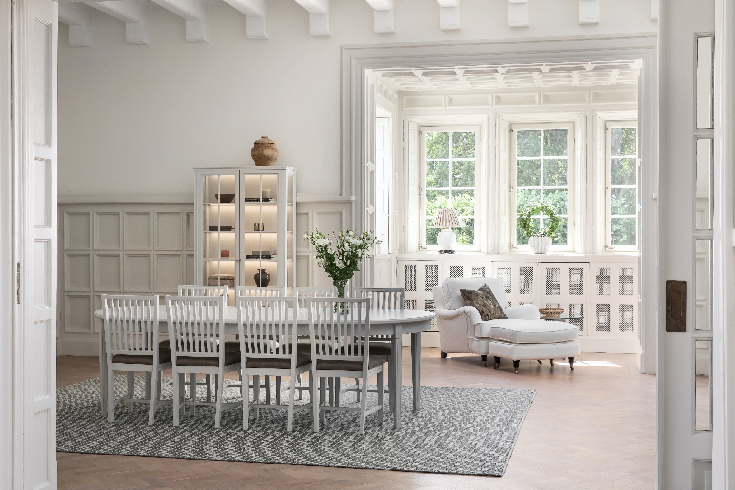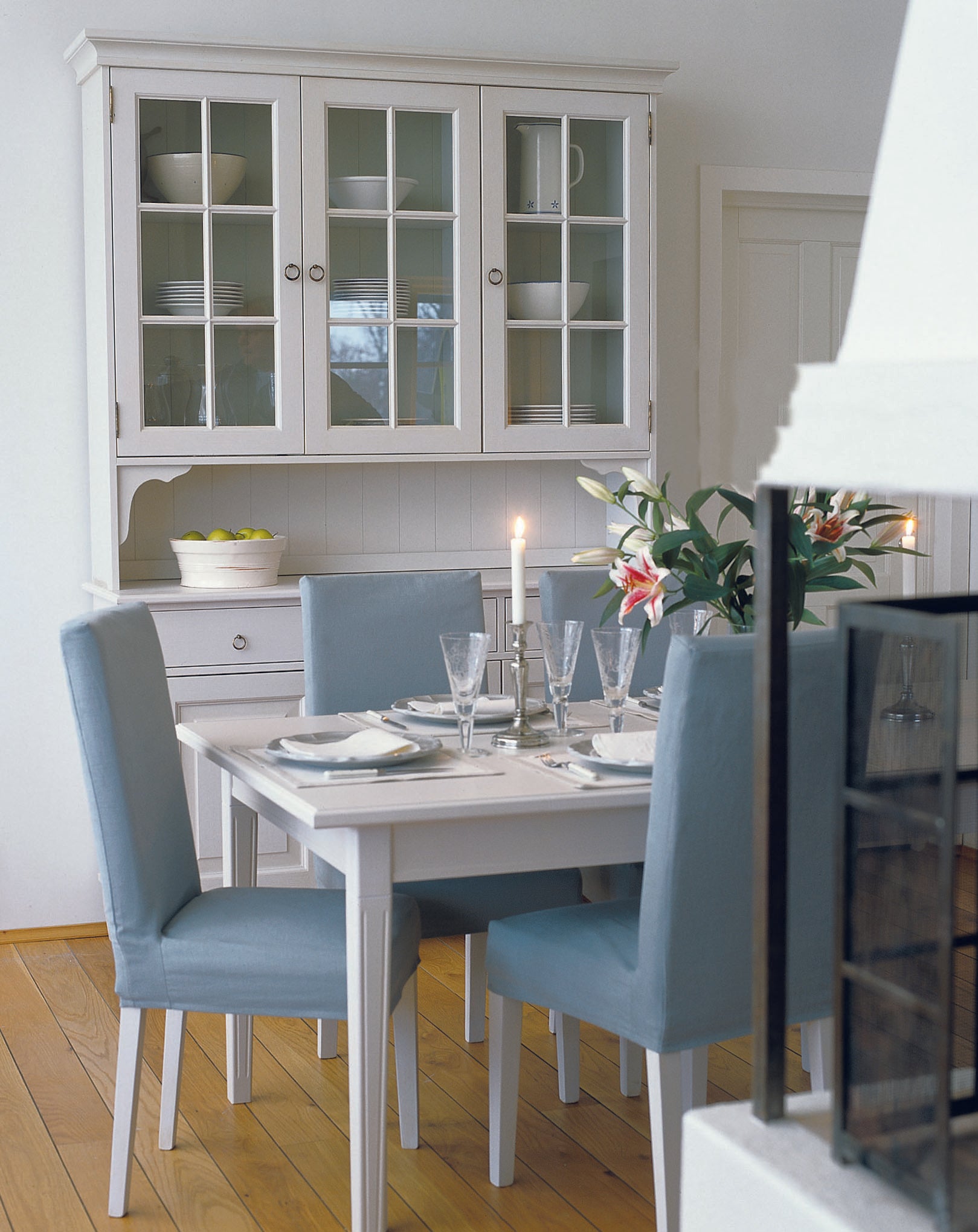 Stockholm överskåp är i klassisk allmogestil med gott om förvaring för glas och finporslin. Överskåpet är gjort för att placeras på en skänk/underskåp. Överskåpet erbjuds i färgen Whitewash och har 3 dörrar och 1+1+1 hyllplan. Med integrerad belysning som framhäver innehållet och ger ett elegant intryck.