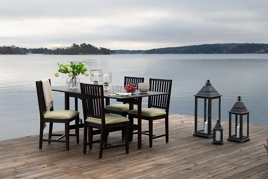 Stockholm slagbord eller klaffbord med två klaffar är vårt mest flexibla matbord. Ihopfällt mäter bordet endast 65 x 90 cm men kan enkelt fällas ut till 185 cm. Perfekt bord för den som bor trångt och ibland får många gäster.