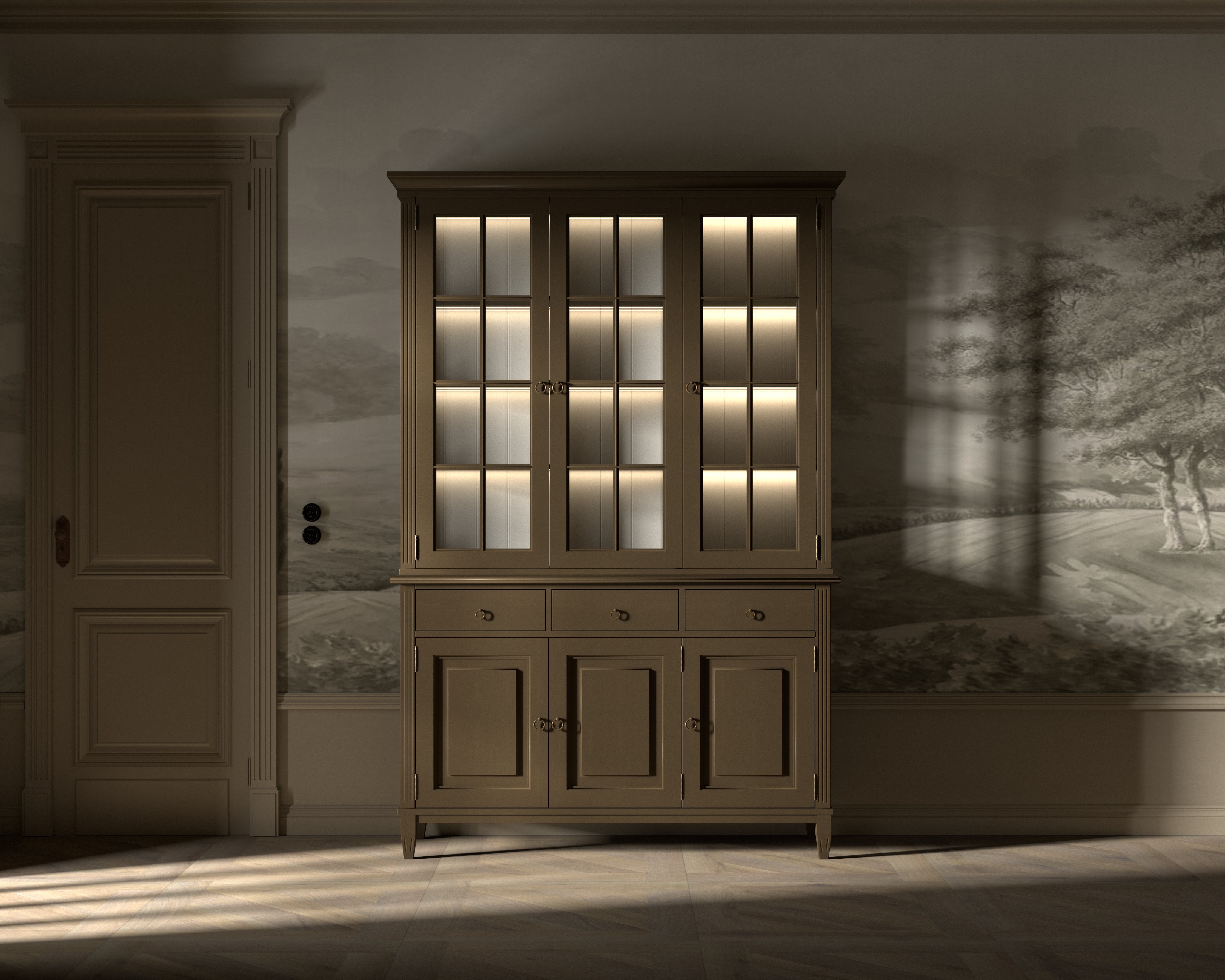 Stockholm skänk/underskåp erbjuder rymlig förvaring för glas och finporslin, och kan placeras både med eller utan vitrinskåp. Skänken har tre lådor, 2 hyllor och tre dörrar – och finns nu i färgen Mocha.